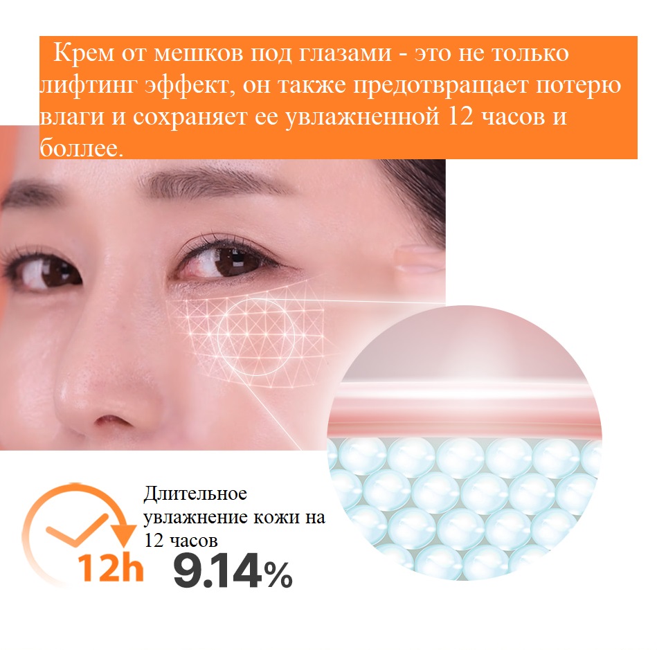 - Мгновенное и долговременное устранение морщин вокруг глаз. – Отличный подтягивающий эффект. – Заполняет морщинки и заломы. – Делает кожу вокруг глаз подтянутой и упругой. – Убирает мешки под глазами.